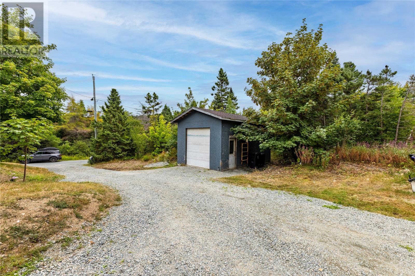 Finding a home on Lawrence Pond only comes by once in a while, this 1 acre property is located in the most desirable area in Conception Bay South where properties are rarely offered for sale! From your front door step you have direct access to Lawrence Pond Road for all your family's swimming, kayaking, paddle boarding, and boating pleasure. This 3 bedroom home is surrounded by mature trees, providing a secluded and private setting. It also includes a 24 x 14 detached wired garage and an old boathouse. Inside, you'll find an open-concept layout with kitchen/dining room area that wraps around to the living room. 3 bedrooms, full bath, half bath and laundry are all located on the main level, which is perfect as its only a couple steps in back door. An to keep this heating costs low there's a mini-split heat pump on the main floor. The lower has an unfinished rec-room area with a wood stove, an additional storage room and a convenient basement side entrance door. With only 1 minute drive from your doorstep to the Peace Keepers Way, your are only 25 minutes to anywhere in St. John's. This opportunity only comes along once in a life time.. trust me! (id:12973)