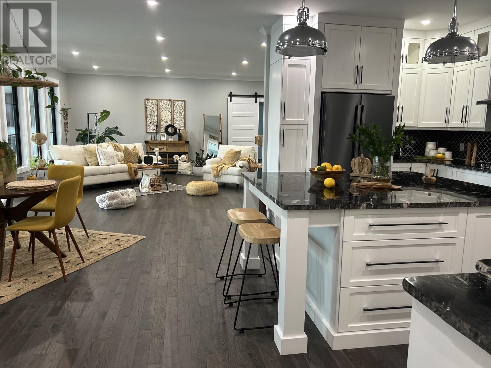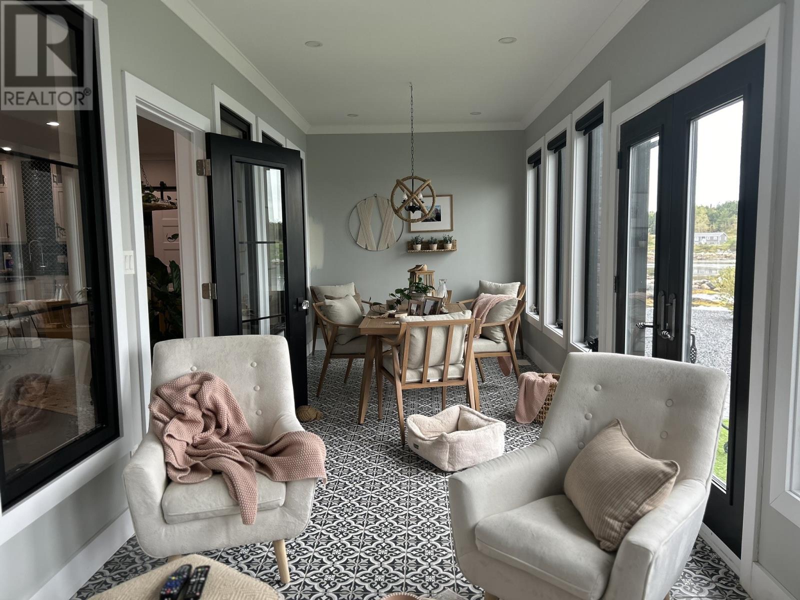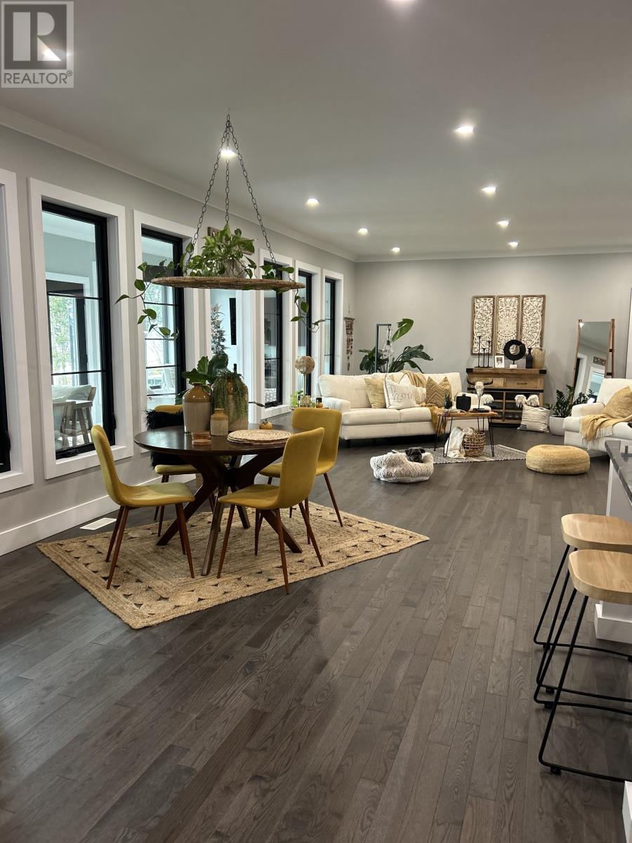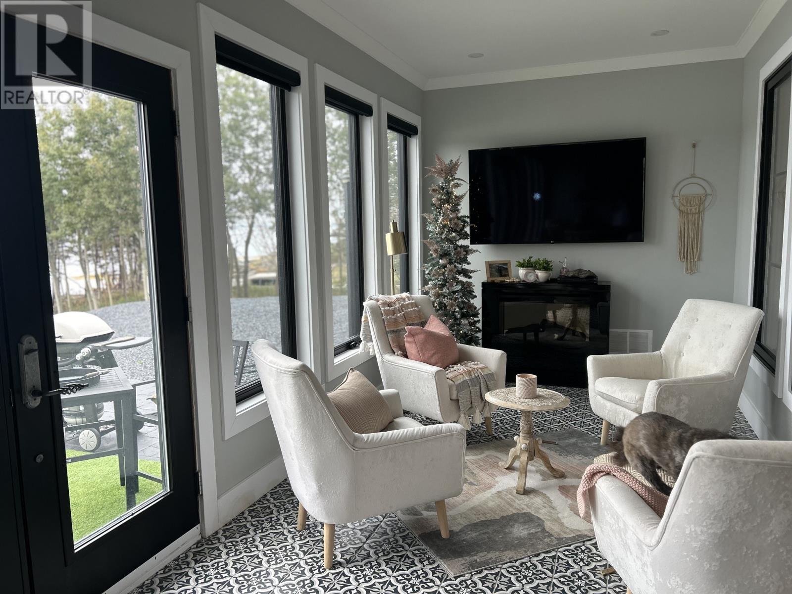 Discover a truly exceptional executive waterfront residence in the tranquil seaside community of Noggin Cove—just 45 minutes from Gander. 14 Main Street is more than a home—it’s a lifestyle. Thoughtfully designed with elegance and comfort, this one-of-a-kind coastal retreat blends architectural style with high-end finishes throughout. Enter through the grand foyer into a welcoming den and formal living room. The heart of the home features an open-concept kitchen and great room, centered around a stunning see-through propane fireplace—ideal for cozy evenings or upscale entertaining. Off the kitchen, a sunroom offers breathtaking ocean views—perfect for morning coffee or sunset relaxation. The luxurious primary suite includes a spa-like ensuite with a statement soaker tub, floating vanity, walk-in tiled shower, and large walk-in closet. Two more bedrooms, including a private guest suite with ensuite, provide space and comfort for family or visitors. Every detail shines: 9-ft ceilings, crown moulding, sliding barn doors, custom white cabinetry, live-edge and granite countertops, and chic lighting. The stylish mudroom features Turkish ceramic tile, laundry, half bath, seating nook, and access to a beautiful solarium. Outside, the curb appeal is second to none—a striking exterior enhanced this summer with vibrant flowers that add natural charm and colour to the grounds. Stamped concrete walkways, panoramic ocean views, and two detached garages (24x36 and 16x24) complete the picture. Serviced by a drilled well, septic system, 400-amp power, and full generator backup. Modern luxury meets peaceful oceanfront living. Showings available by appointment. (id:12973)