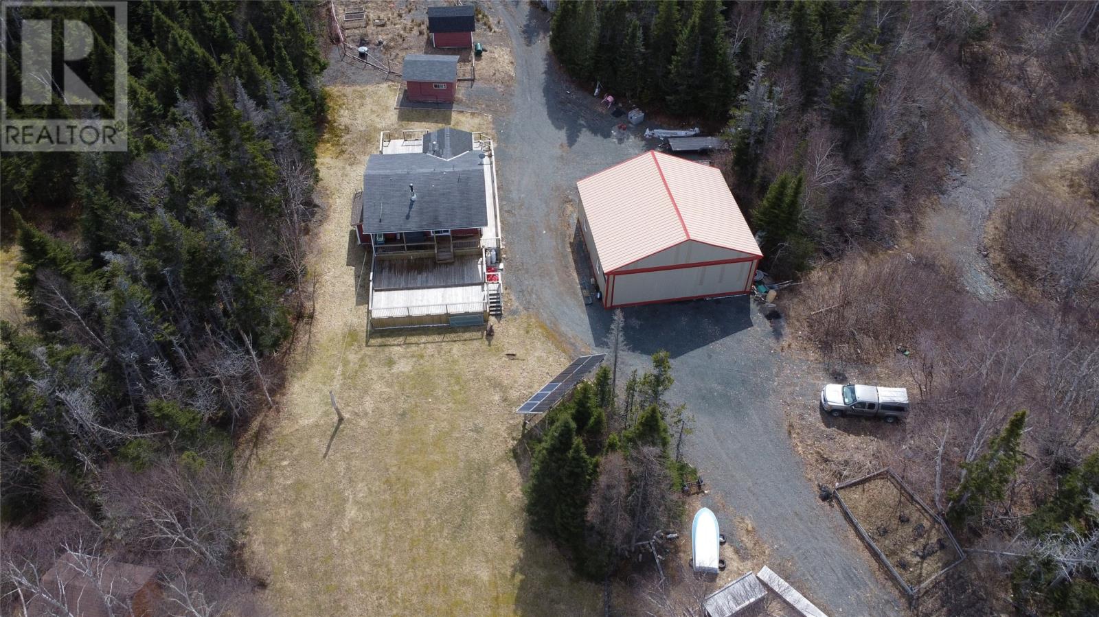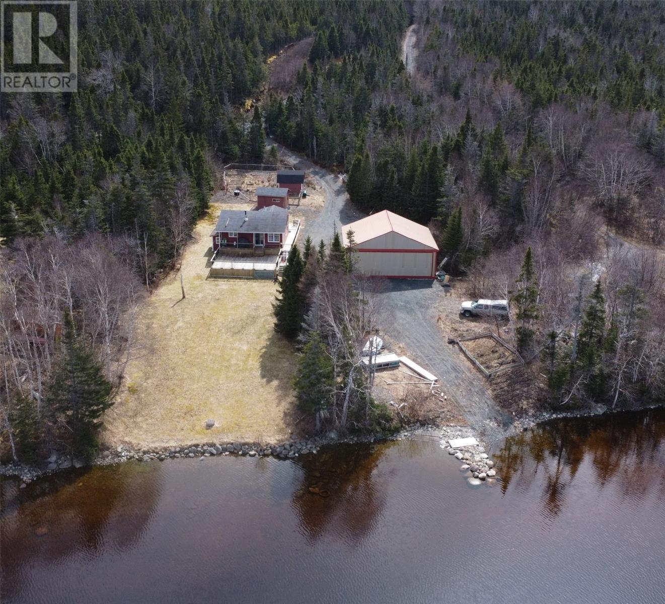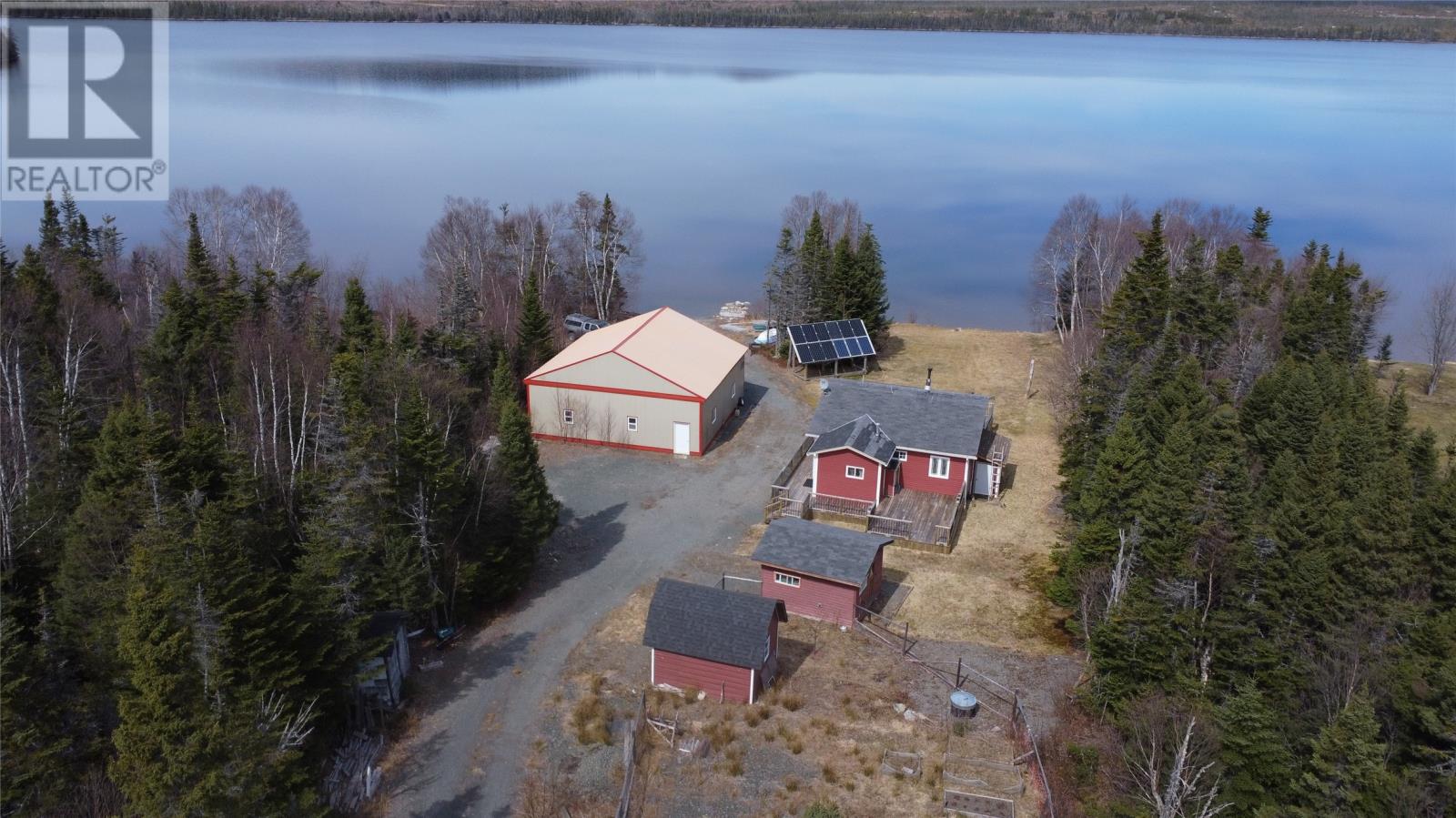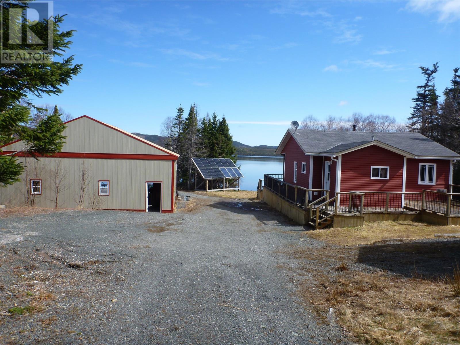 Are you looking for off grid living or a lovely cabin for a secluded getaway then look no further than 2 Georges Pond Road. This cozy 2 +1 bedroom cabin sits on a one acre waterfront lot with ample rear round privacy. The main level contains an open concept living room / dining area / kitchen with hardwood flooring and pine walls and ceiling. The primary bedroom second bedroom and bathroom are also on this level. The lower level contains the family room 3rd bedroom and large entrance / mudroom. The cabin is heated by a propane heater and woodstove and has power provided by a large bank of deep cell batteries ( solar powered ) along with a backup generator as required. The cabin has a large 2 level patio on the front along with a 36' x 40' hanger; ideal for any plane enthusiasts or for recreational storage. A series of sheds for storage and a great spot to have your own garden. All this just one KM from the highway, 10 minutes to Clarenville, 15 minutes to Terra Nova Golf Resort. Ideal location for the outdoor enthusiast. (id:12973)