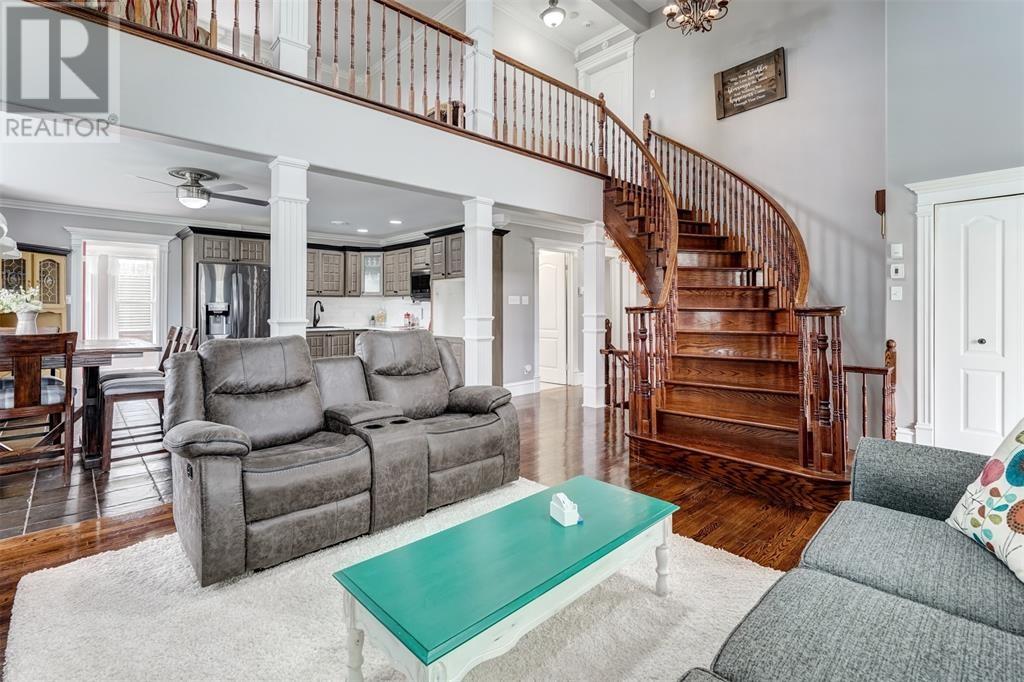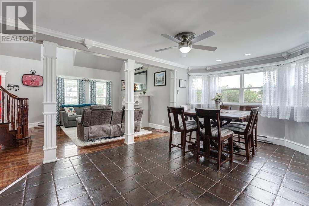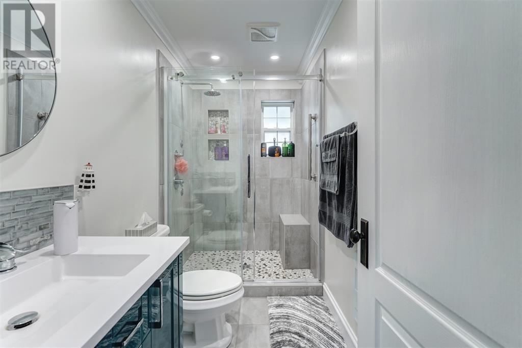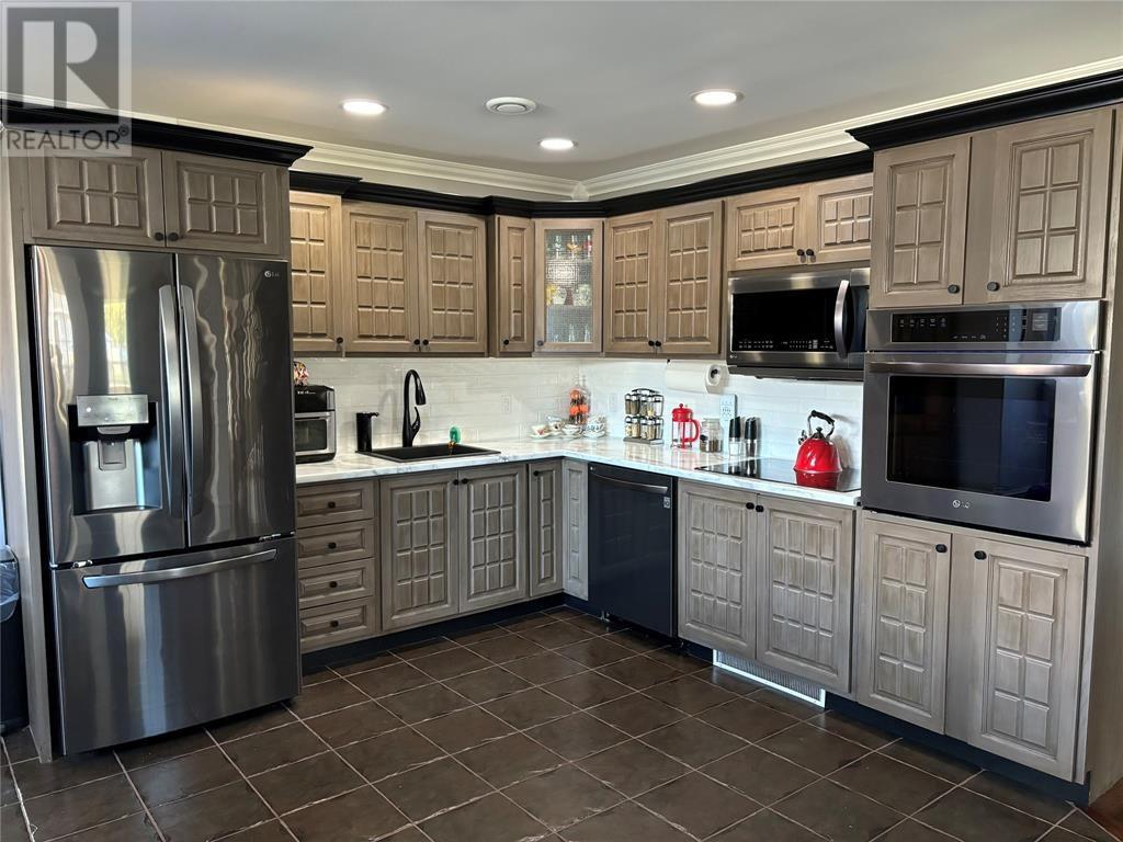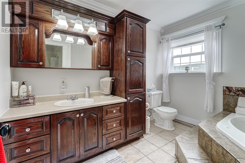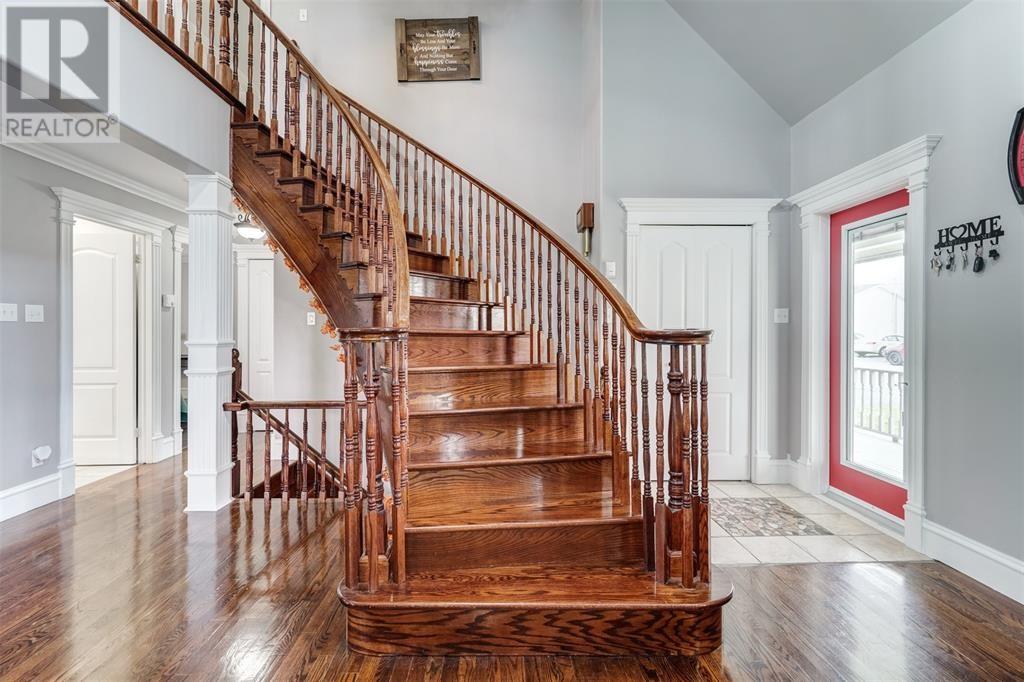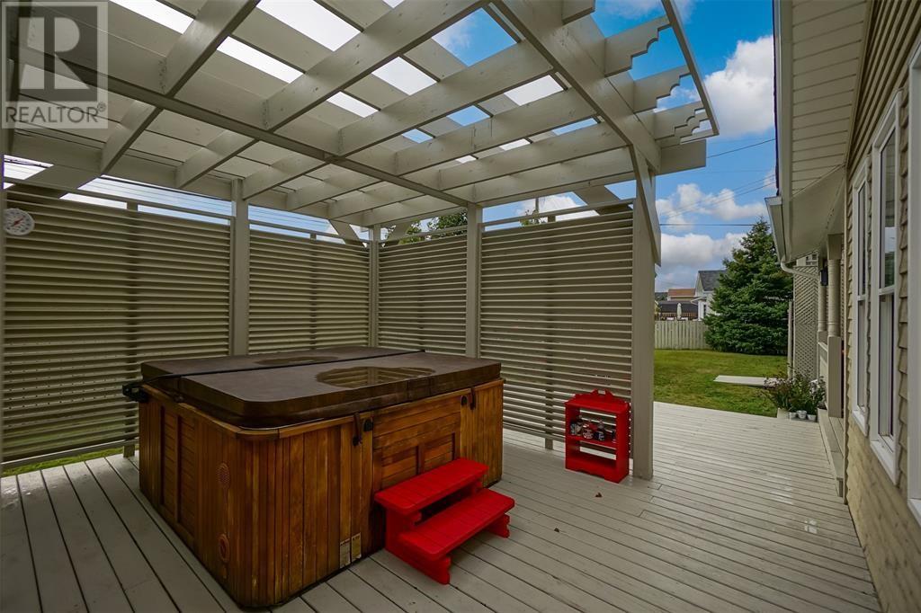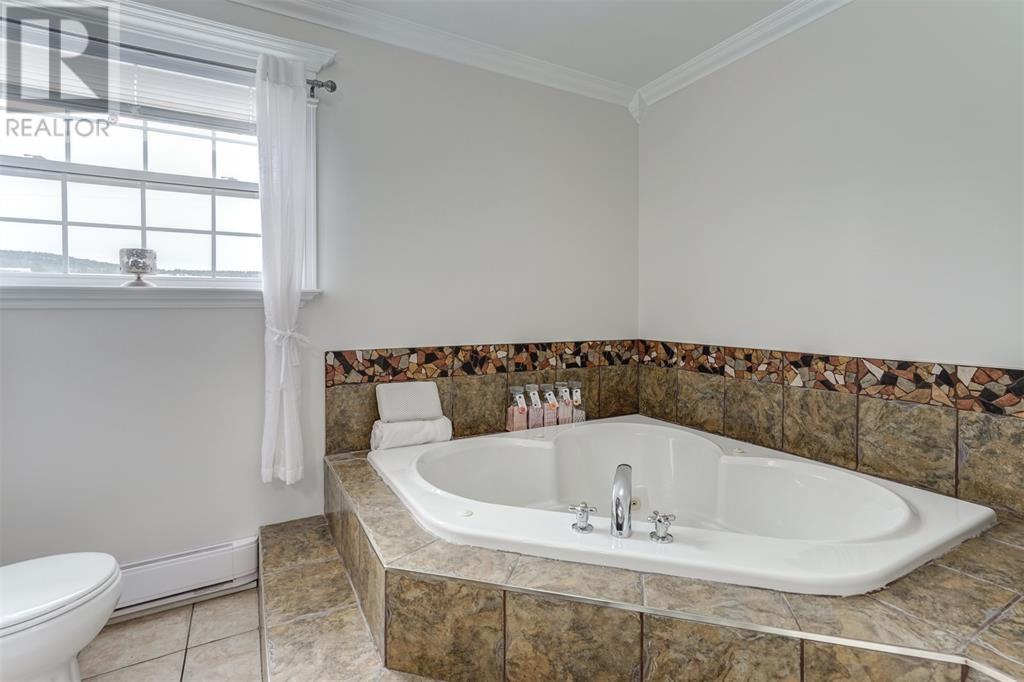 This immaculate home is only a min's drive to the Carbonear General Hospital, The Family Resource Center, theatre, shopping malls, hardware stores, dentist, prime restaurants, and all other major amenities in the area. The lot is a little over .5 of an acre, is mostly fenced with all town services in place & manicured to perfection. The home includes 3500sqft of living space, lg multi vehicle paved driveway, double attached garage, detached garage, storage shed, hot tub with pergola enclosed for your privacy, space for fire pit, under patio sitting area and covered porch at the front. Shingles just replaced in the past month. As you enter the foyer expect to see nothing but beauty! The living room includes a beautiful propane fireplace, a Mini Split Heat Pump and is very spacious. The design is a modern open concept with a lovely refurbished kitchen that includes high end appliances. The kitchen leads to the spacious mudroom and outside to the park like setting in the backyard. Outside there is a covered porch, the perfect space to bbq and entertain. The main bath has all been remodeled and includes a walk in built up shower, beautiful ceramics and vanity. Also on the main level are two beautiful bedrooms all redone with new hardwood flooring. The home has been freshly painted throughout. Move on up the winding hardwood staircase to the perfect sitting area that opens up down below to the living room. Here's where you can take in the beautiful views! On this floor you will find the most beautiful Primary Bedroom with new hardwood flooring, walk in closet and a gorgeous Ensuite Bathroom with Jacuzzi tub. Outside the Primary bedroom is a Bonus Room that leads to a 28 x 10 outside deck, what a spot to relax and take in the views. In the lower level there is a lg rec room with a bar that was recently completed. There is a remodeled 2pc bathroom, laundry area, walk in pantry and several rooms for storage or multi purpose. (id:12973)