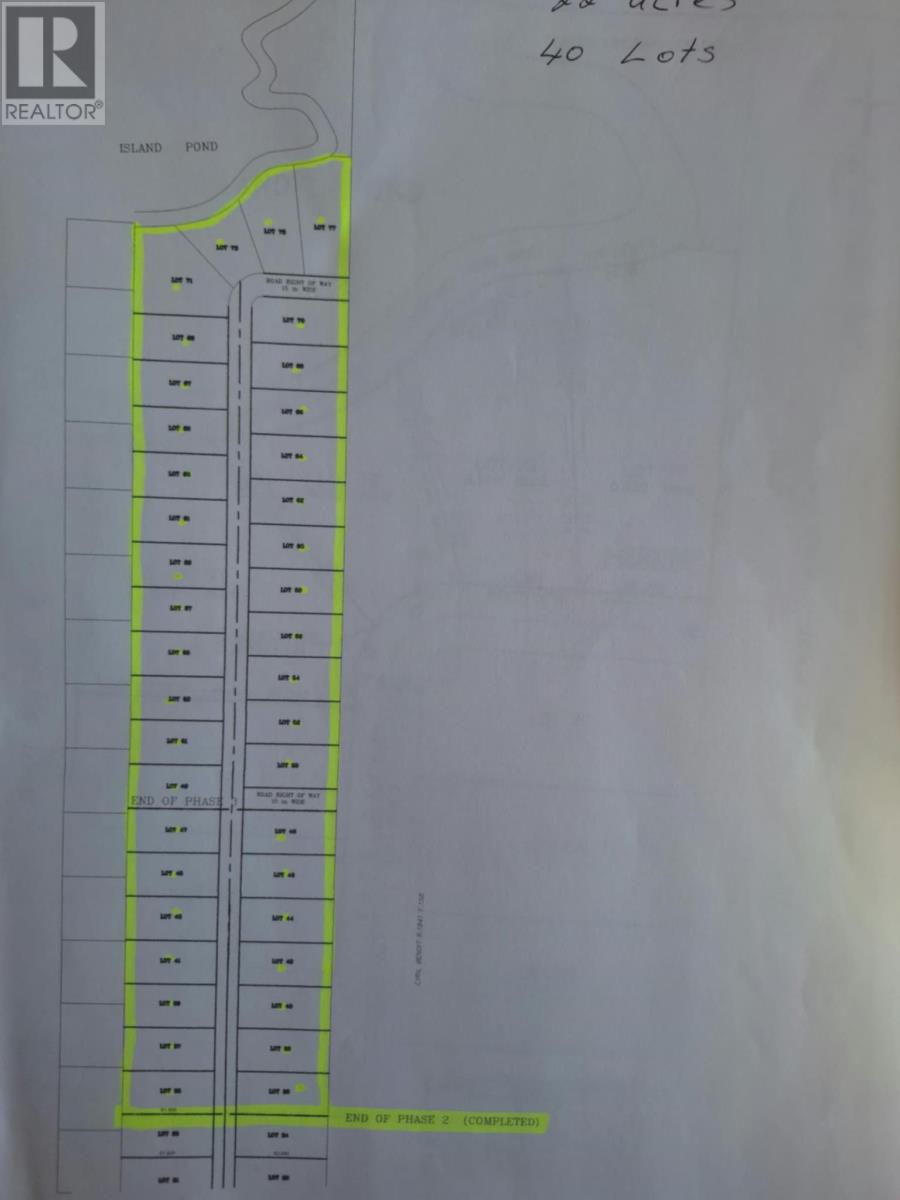 Don’t miss out on a rare opportunity to develop a premier residential community or create your own private retreat on this expansive 22-acre parcel of land, ideally located at the end of Forsey Subdivision on Oake Drive in Kippens. With over 450 feet of frontage and stretching all the way to the scenic Island Pond, this property is full of potential. Whether you envision building your dream estate with direct pond access, or continuing the vendors’ vision by launching the next phase of Oake Drive with 40 pre-surveyed lots, this land is ready for action. Location is everything, and this parcel offers convenience and accessibility. Easily hook into the existing municipal water line, and extend the asphalt road directly down through the property for a seamless continuation of the neighborhood. Outdoor enthusiasts will appreciate direct access to the backcountry, offering year-round recreational opportunities like hiking, snowmobiling, and more—right from your yard. A full survey of the entire parcel, as well as individual lots, is available. This is a prime opportunity for developers and dreamers alike—act now before it’s gone! Purchase price is subject to HST. (id:12973)
