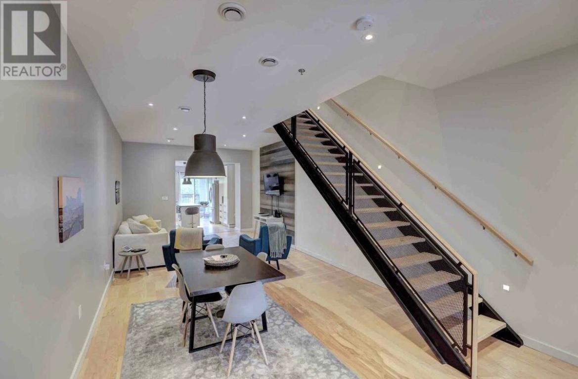 One of a kind, high end executive 2 bedroom, 2 and 1 half bath, plus 3rd floor bonus room, all self contained, open concept town home located 5 minutes walk from the downtown core. Each unit has an in house garage and a private roof top deck. With high end finishes this home is perfect for the professional who wants that downtown quintessential living. Equipped with heat pumps, air conditioning, security systems and outside cameras. Each bedroom has an ensuite bath and their own deck. Main floor has a two piece bath for your guest's convenience. With high ceilings throughout, this home has a spacious feeling. Finishes include hardwoods, ceramic and quartz. Perfect for entertaining and cozy living with a New York vibe. Located close to schools, shopping, restaurants, and recreation. This property is being rented fully furnished and equipped with all utilities included. Call today for your private viewing. This home has to be seen to be appreciated. (id:12973)