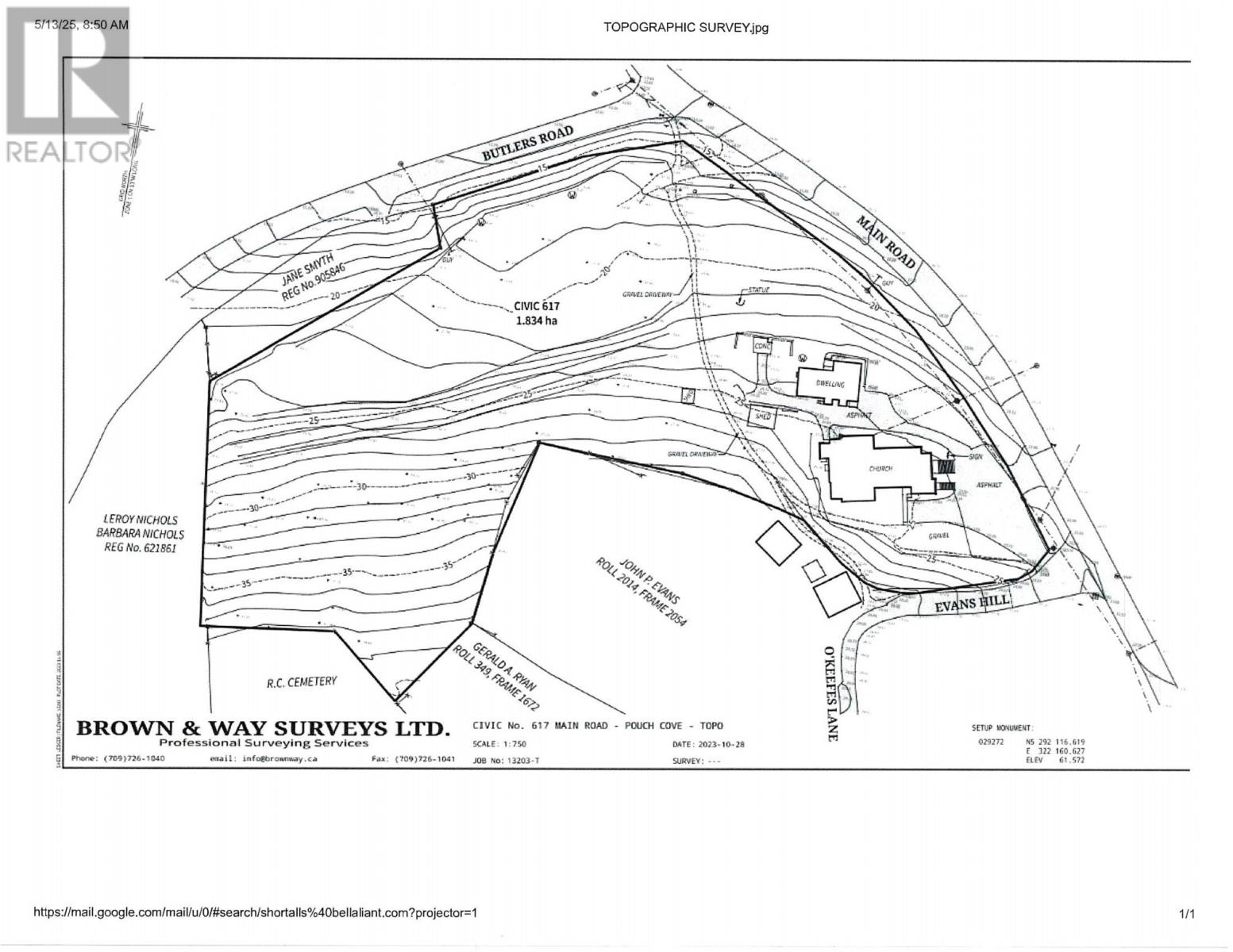 Welcome to 617 Main Road — a truly rare opportunity in the heart of scenic Pouch Cove. This expansive 4.5-acre parcel of land offers breathtaking ocean views and endless possibilities for development or uses. With its generous size, gentle topography, and direct access from Main Road, the property is well-suited for future residential development, a private retreat, or a creative project that complements the charm of the community. Rich in local history, on the site St. Agnes’ Church — a landmark whose cornerstone was laid in 1916, the same year Pouch Cove gained ecclesiastical independence from Holy Trinity. This area carries both cultural significance and long-standing community spirit. Whether you're looking to build, invest, or simply secure a slice of coastal Newfoundland, this property offers a blend of natural beauty, historical context, and practical potential. Don’t miss your chance to own a piece of Pouch Cove’s story. (id:12973)