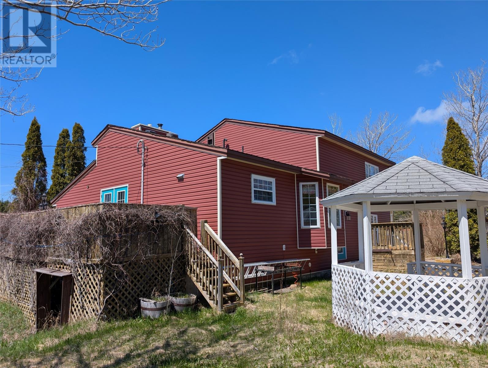 Spacious Family Home on a Large, Private Lot in Pilley's Island This beautiful family home is centrally located in Pilley’s Island on an extra-large landscaped lot with mature trees for added privacy. The property features a partially fenced yard, a single paved driveway from Main Street, and a large circular driveway at the rear on Pittman’s Road. Outdoor highlights include a ground-level rear deck (12' x 13'6"") and a side deck (10'6"" x 24') with privacy fencing off the dining room, a gazebo and firepit area perfect for outdoor relaxation, and two storage sheds (10' x 13' & 8' x 10'). This lot offers plenty of space for kids to play. The exterior is finished with vinyl and brick, with some newer vinyl windows added in recent years. The main level features front and rear foyers, a large family room with an electric fireplace, a half bath, a laundry room with washer and dryer included, an office, and a den with a wet bar and private entrance. This space was previously used as a one-bedroom in-law suite and can easily be converted back or used for a home-based business. The second level includes a bright breakfast nook with large windows overlooking the backyard, a spacious kitchen with oak cabinetry, an island, and ample counter space. The built-in oven, dishwasher, fridge, and stove are included. The formal dining and living room features cathedral ceilings and a wood-burning fireplace. The third level has three bedrooms, two of which have patio doors leading to a covered balcony, a great place to relax while staying protected from the elements. There is a full three-piece bathroom, and the master suite includes a separate sitting area, which was originally a fourth bedroom and can be converted back, a walk-in closet, and a three-piece ensuite with a corner shower. This home has endless possibilities and must be seen to be fully appreciated. Don’t miss this opportunity! (id:12973)